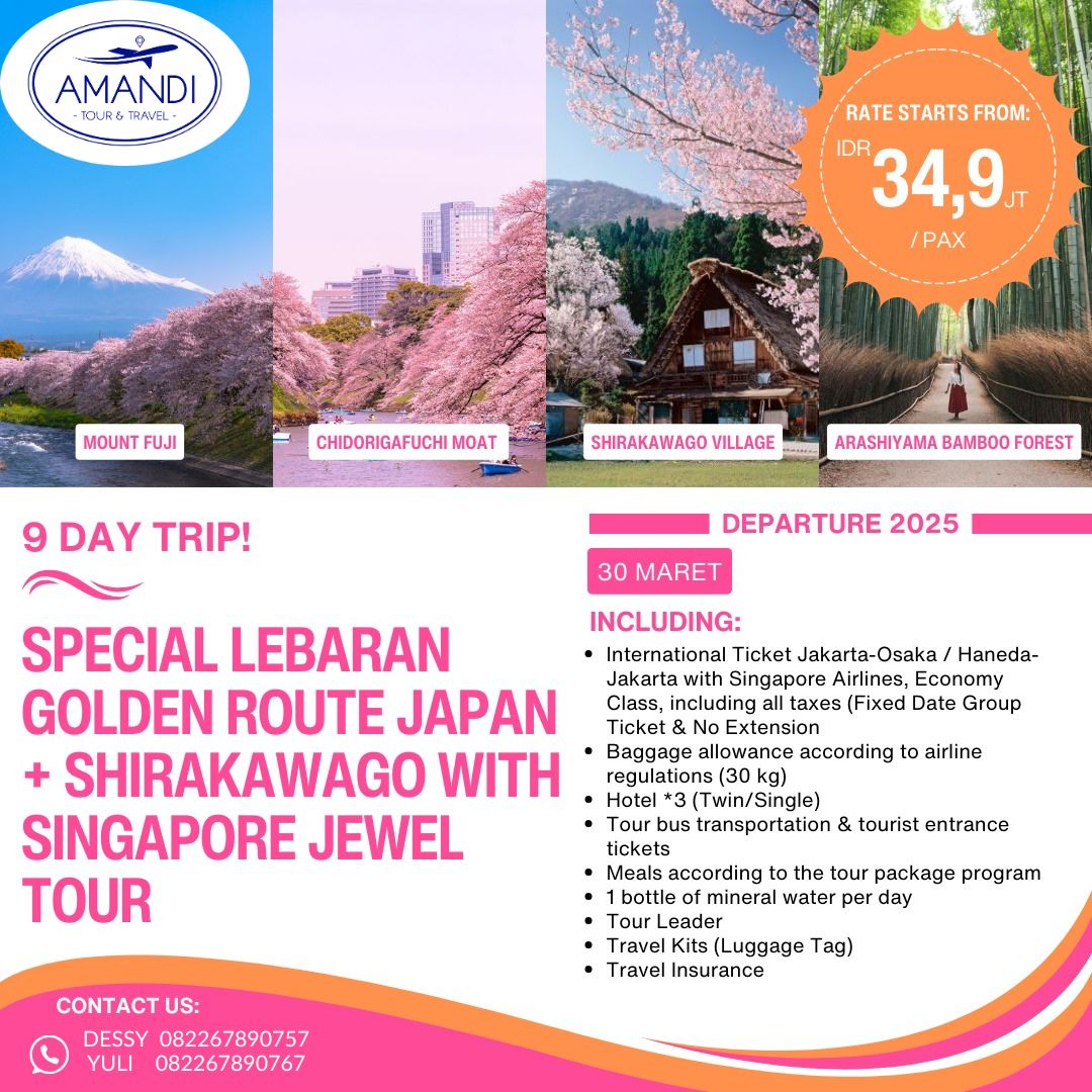9D SPESIAL LEBARAN GOLDEN ROUTE JAPAN+SHIRAKAWAGO WITH SINGAPORE JEWEL TOUR